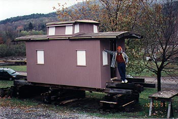 At Arkville, the U&DRHS is currently restoring a wooden 4-wheel "bobber" caboose, originally NYO&W 8206, built in O&W's Middletown shops in 1906, and later sold to Unadilla Valley as their No. 51. As of fall, 1997, the exterior superstructure was substantially complete, and restoration of the interior, and of the underframe, springing, and other ironwork - most of which we have - is underway. Much of the work has been financed through a grant from the O&W Historical Society, and a matching grant from the Catskill Revitalization Corp., operators of the Delaware & Ulster Rail Ride; but substantial additional funds are required, and your tax-deductible donation to the "U&DRRHS -Bobber Fund", will be gratefully received. 10/09/06