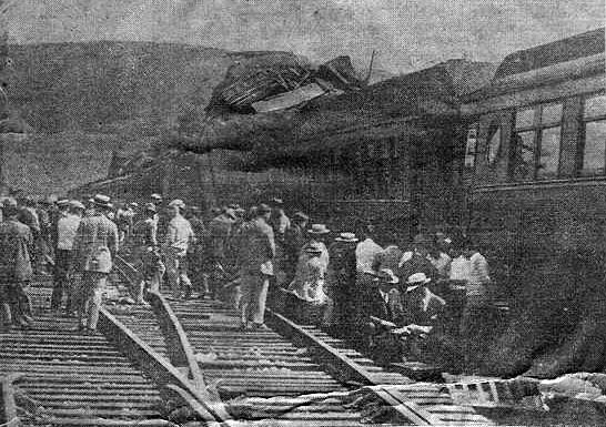 The rear of the freight was standing about 200 feet south of the switch in the center track into the Iona Island station. F.B. Palmatier, the flagman had just left the switch in answer to whistle signals from the engine when he looked back and saw the passenger rounding the curve in the shadow of Bear Mountain. He seized the flag and rushed back toward the switch but too late.