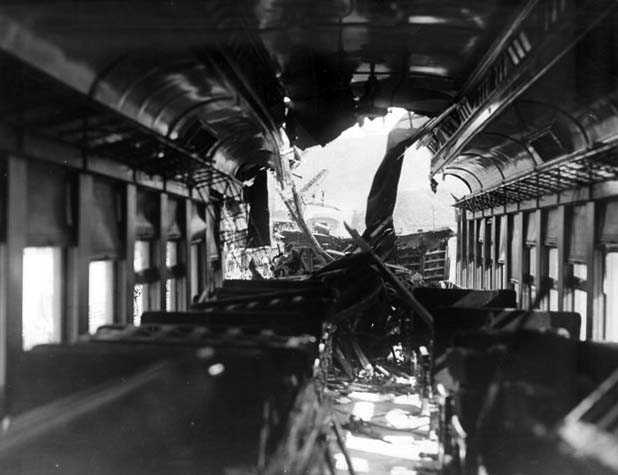 Baggage Car Shears Back Through Day Coach, Killing 3 Outright in Seats.