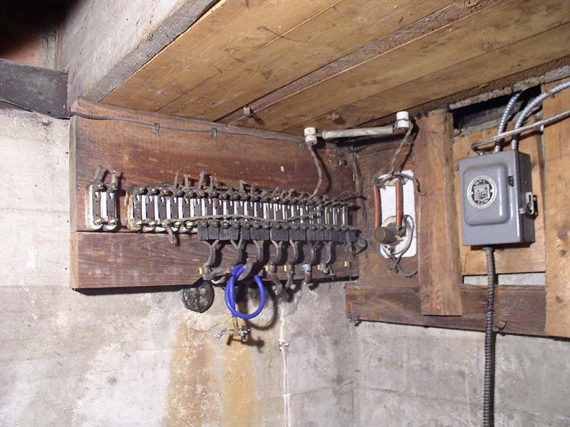 The picture in the basement of the Mamakating depot is, I believe, a telephone terminal strip. The "giveaway" is the strange device on the porcelain insulator base with the two long "cigar shaped" gizmos in the circuit. That peculiar thing as called a "Lightning Arrestor" and goes back to the days when telephones (from "THE PHONE COMPANY") all provided their own 12 VDC power, over the lines.