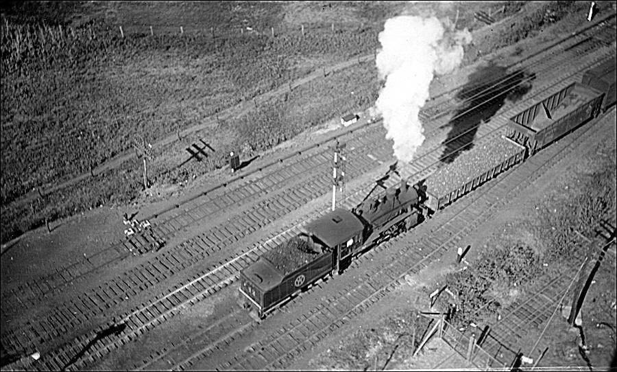 Sometime during the latter years of World War Two, O&W #42 - an end cab I class Mogul, was photographed from the smokestack of the Bendix-Scintilla plant at Sidney while in the process of switching cars from the military supplier to the railroad's yard. In its own way, its marching between the two places helped to keep the Army Air Corps planes flying so that both they - and it - could defeat the Hun and Jap. Large Format
