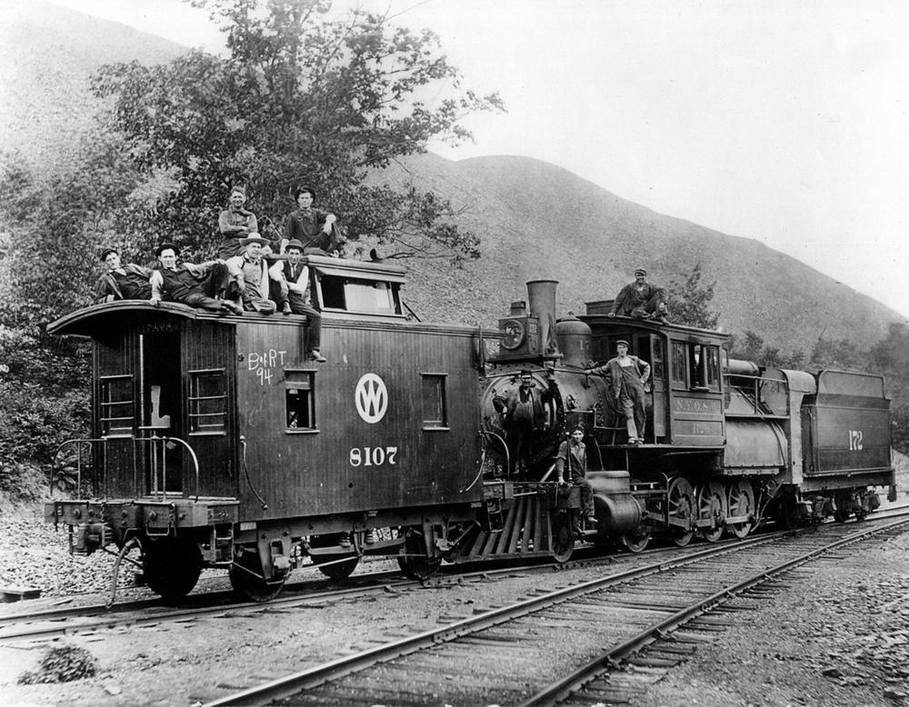When I first started on the line crew there was a man and his nephew, I think it was them 2nd and 3rd from the left.. They were quite old at that time, for I was in my late teens. They had cabin on a mountain near Summitville station. They would not work winters and the both of them would get off at Summitville and go to their cabin. They were heavy drinkers, but put away enough to get them threw the winter. The oldest smoked a pipe and I remember seeing the nephew pass out in the bar next to the Norwich yards, he laid straight across a bar stool. The uncle dragged him back to the camp cars. Next day they were up raring to go. Amazing.