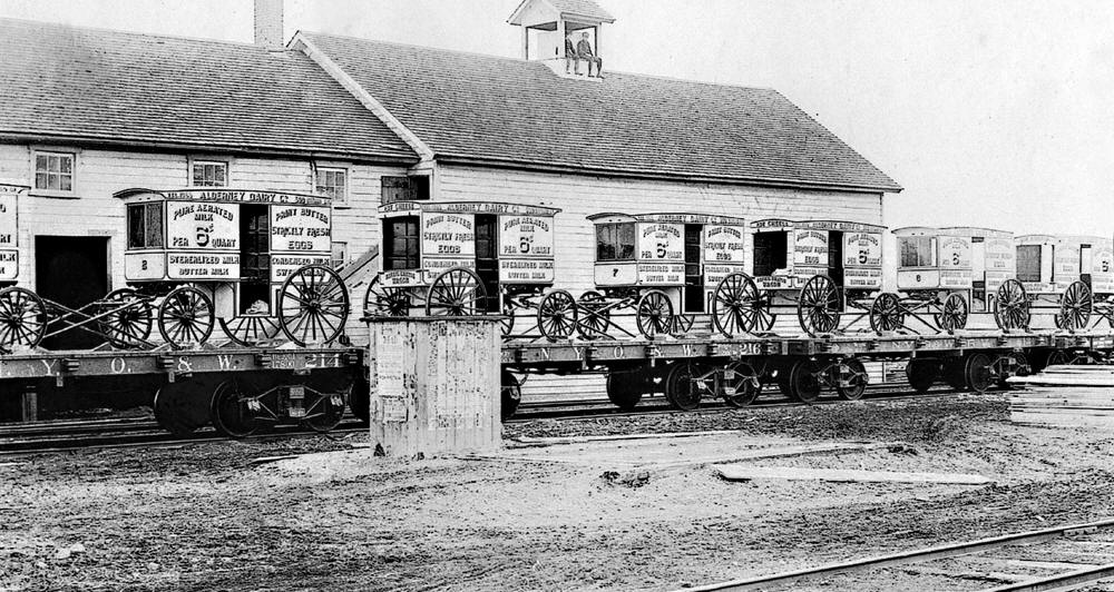 This is Parson's Wagon Factory in Earlville, NY on the O&W with a load of milk wagons ready for shipment. on NYO&W flat cars. Photo courtesy of Walt Kierzkowski
