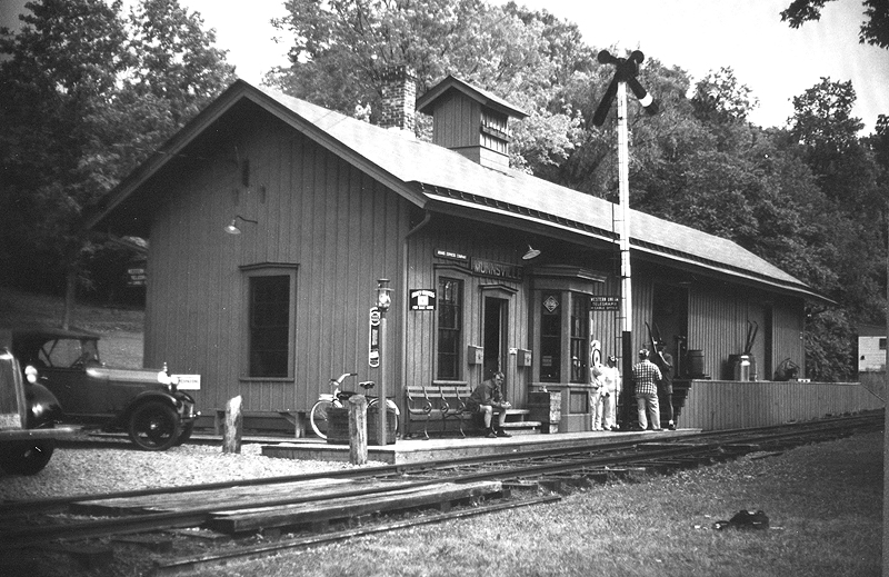 Most of you have seen either in person or in pictures the beautiful job that John Taibi has done on the complete restoration of the Munnsville Depot. You have probably also seen shots of the station during the glory years of its operation along with the woebegone photo of the station, receivership document flapping on the door, that brought an ignominious end to William Helmer's book on O&W. But in addition to all of these, I thought you might be interested in seeing some rare shots that fell somewhere between the death and rebirth of the old girl.Back in 1970, my new wife and I were living in Herkimer, NY, midway between her teaching job in Little Falls and my job as a management trainee (remember them?) with Sperry Univac in Utica. I had recently read Bill Helmer's book and was fascinated with the O&W, although never having actually seen it as I grew up along the 4 track mainline of the NY Central in Canajoharie, NY. So one boring cloudy muggy Saturday in July, I decided that hey, maybe the old Munnsville station was still standing (1957 wasn't THAT long ago), Oneida County wasn't so far away, and it was sure worth a drive to find out. My wife (who was never partial to digging around decaying old buildings) politely refused my invitation to join me so off I went in our VW Beetle convertible, complete with an ancient Argus C-3 camera, in search of history.