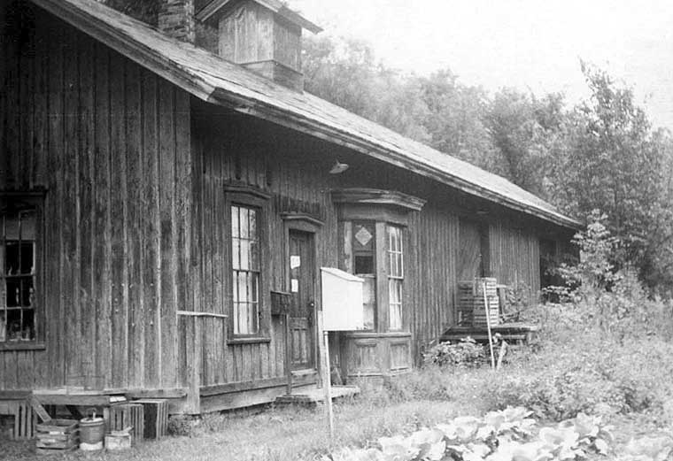You can see from the attached pictures the condition of the station that day 35 years ago. Although the windows and doors were all intact, the building was rapidly returning to nature, being heavily overgrown with trees, shrubs, and weeds. In the far end of the station, someone had apparently cut an opening an installed a door for some kind of vehicle or other. Across the right-of-way sat the creamery, boarded up but still in fairly good shape in the original gray and white color scheme. (Having seen this photo, John has told me that the old creamery is now seedier than even then based on someone's ill-advised attempt to turn the building into cheap low-income housing).