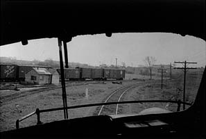 Above: If we were to look back from this side of the cab, we would see the enginehouse and limited facilities at this northern extremity of the O&W. Also behind us are the rails that lead into town, the harborside terminal and connections with the New York Central (former RW&O) and the Lackawanna. Less than a mile off to the left, Lake Ontario stretches to the northern horizon and the Canadian shore.