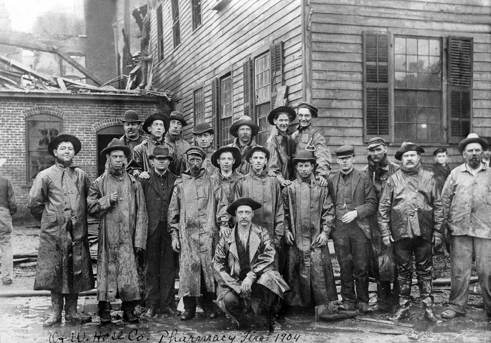 O&W Hose Company at the scene of a a Pharmacy fire in Norwich, 1904. Barry Abisch Collection.