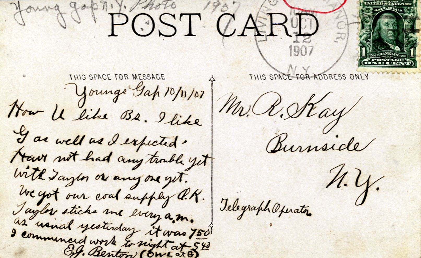 card has a 1907 Haven postmark, so I know there had to be a post