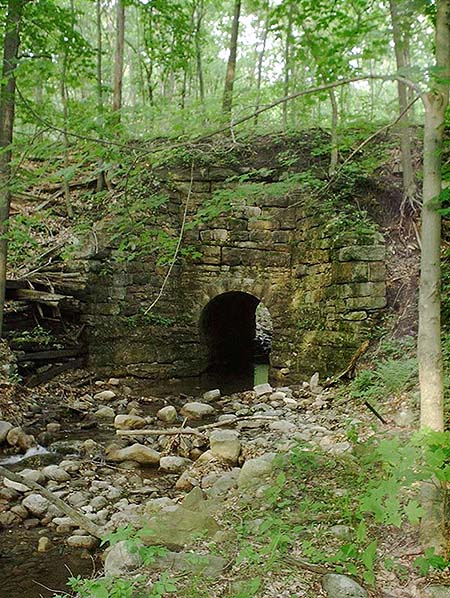 I read with interest your account of the brief visit you and Bob Mohowski made to High View, and the North portal of the tunnel. I first visited the North portal only a little more than a dozen years after the road quit, and both your narrative and included pictures show many changes since that time and when I was last there in the late 80's. Notably, it appears that much of the portal retaining wall has either collapsed, or has been demolished in the attempts to close off the entrance. By the late 70's stones were tumbling down from the left side of the portal, but the "date block" was still in place and clearly legible.I have several comments on this area, and I think I can answer your question about the odd stone building (timetable) north of the tunnel on the North (compass) side of the right of way. While it may seem at first that this building was a "retreat," that is where tunnel workers would take shelter from debris during blasting, I think it may not be so.