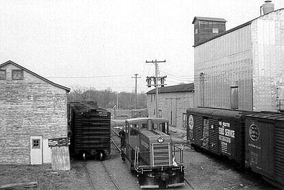 Top Photo: Ray has climbed aboard the boxcar on the Ford Weld and Cox switch to the inclined siding. Note the Ford Weld and Cox building to the left of the boxcar. The track this car is on went across the street to the station for a team track. To the right is a closer look at Mannings facility.