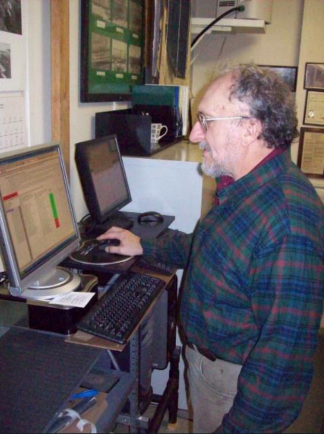 We've set up a workflow for two people to work efficiently -- one to enter the information, and the other to handle the original documents (scan them, check the results on the Océ controller, rescan if needed, name the scan files, and move the documents to the completed area). The two people will need to share information about each file, so we set up a PC right next to the Océ controller for entering data into the spreadsheet. We connected that PC, the Océ system, and the main archives PC (in the office/sales room) together via a computer network so data and files can be moved among them, and one PC can be used to back up files on another.