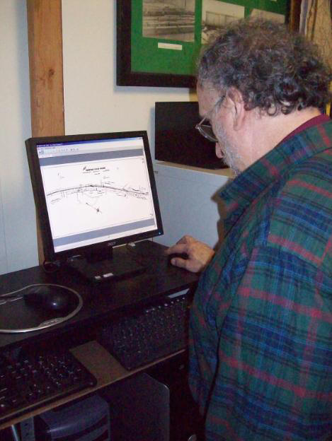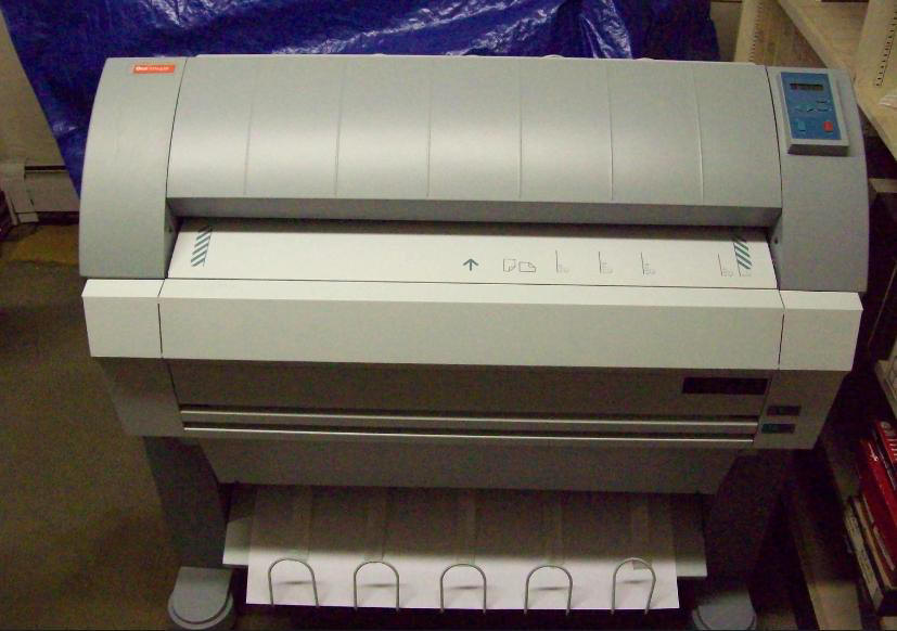 That requires unique equipment, and after careful research we settled on a TDS-450 system from Océ-Technologies (see the photos). It is a fully integrated system, which avoids possible compatibility issues, and is fast, easy to use, flexible, and robust. It is roughly equivalent to the all-in-one printer/scanners that many of us have at home, only a whole lot bigger -- and a whole lot more expensive (We were able to purchase a demo system at a significant discount, although it still put a large dent in our bank account). It can handle documents up to 36" wide by virtually any length. It can scan in monochrome (simple black and white), gray scale (needed for photos, but handy for documents, too), and color (surprisingly, many of the O&W documents contain some color, usually very limited, to set off property lines, building walls, etc.). The printer holds two paper rolls (different widths), selects the proper roll automatically, and cuts the copies to length. It uses toner (similar to a photocopier or laser printer), which makes fast, low cost, yet stable (generally waterproof) copies. Because it uses toner, the prints are black and white only, but because the color in the drawings is usually of little significance, that should be perfectly acceptable. The system also has its own controller unit, similar to but definitely different from a PC (it has Windows XP, but it is embedded within the Océ software program).